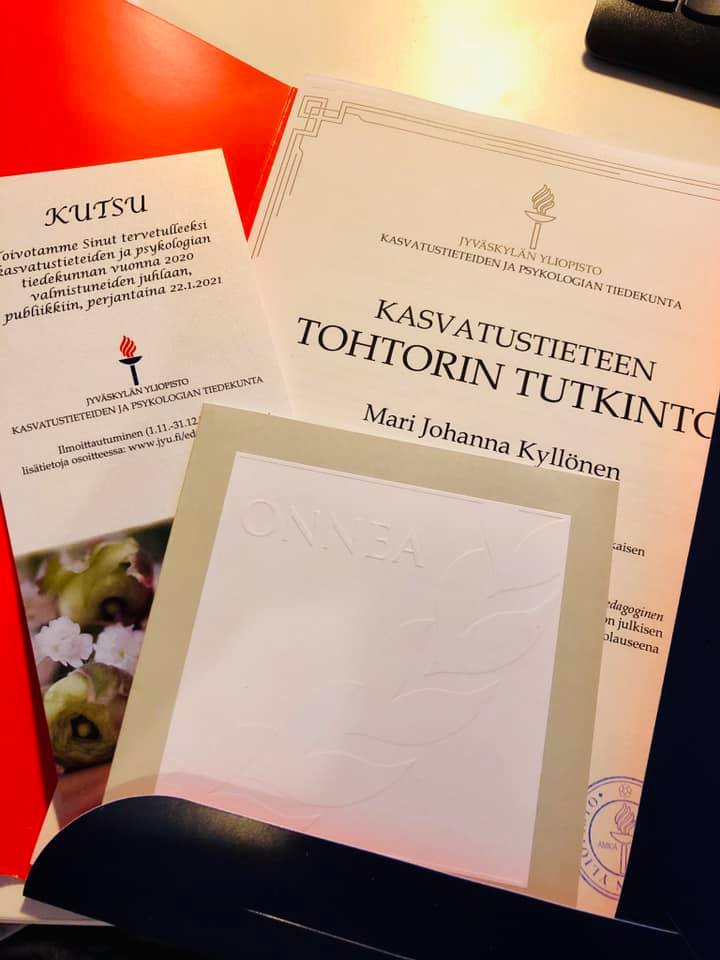 KT, kasvatustieteen tohtori, Jyväskylän yliopisto, OKL.